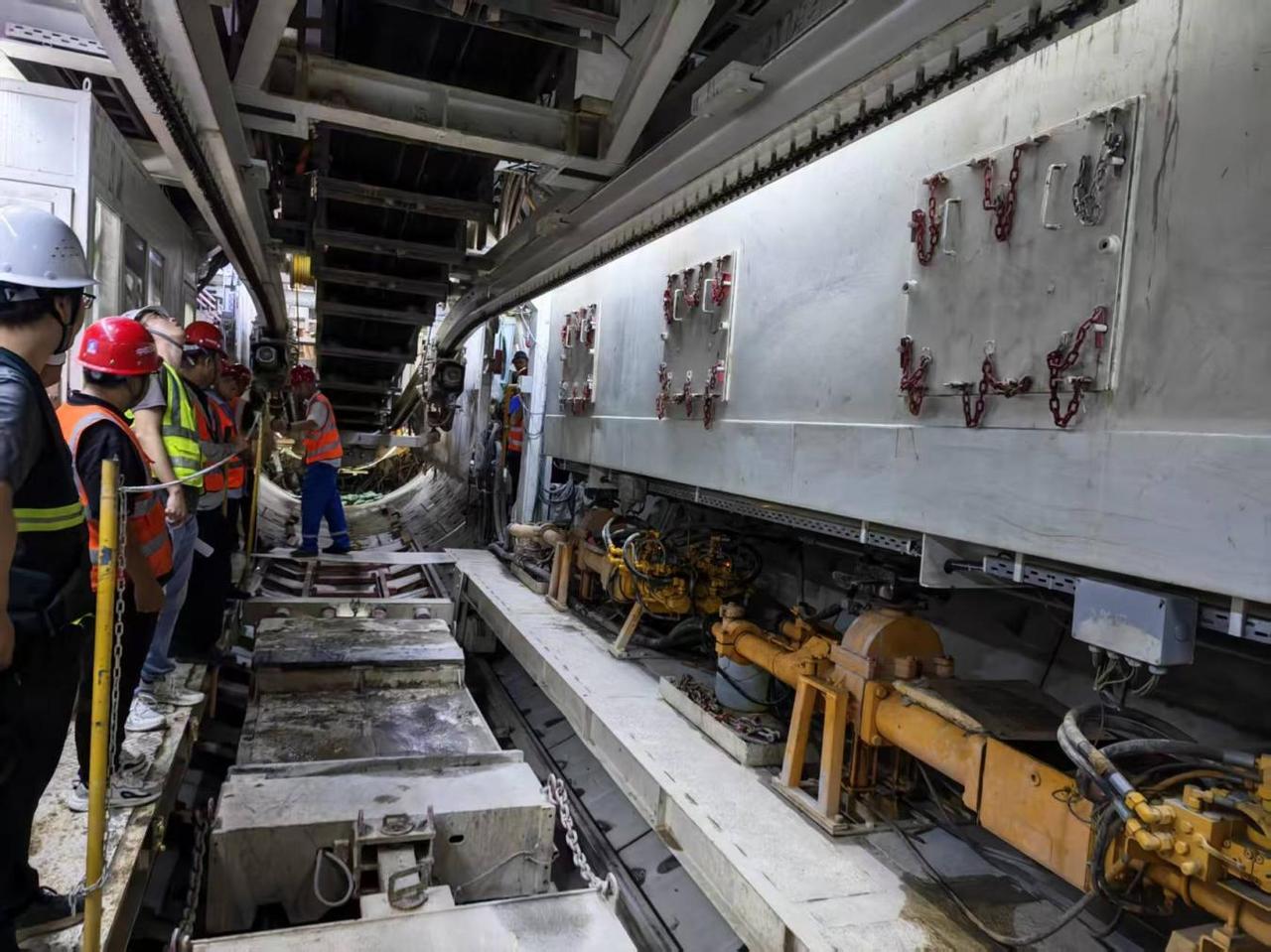 据了解,项目部严格执行地铁公司及总包部下发的安全文明施工标准化手册。在质量工艺管控方面,项目部坚持“精细化管理、标准化作业”理念。盾构掘进严格执行日指令单和月参数分析制度,每环节开展渣样分析、渣温监测,采用“体积、重量”双控措施严算出渣量,有效防止超排;管片从出厂、进场到止水条粘贴、拼装前实施四次验收,拼装过程中逐环卡控错台、椭圆度等指标,严格落实三次螺栓复紧制度。同时,运用HSP地质探测法超前探明地层情况,采用探地雷达定期开展空洞探测,确保盾构掘进安全高效、成型隧道质量优良。